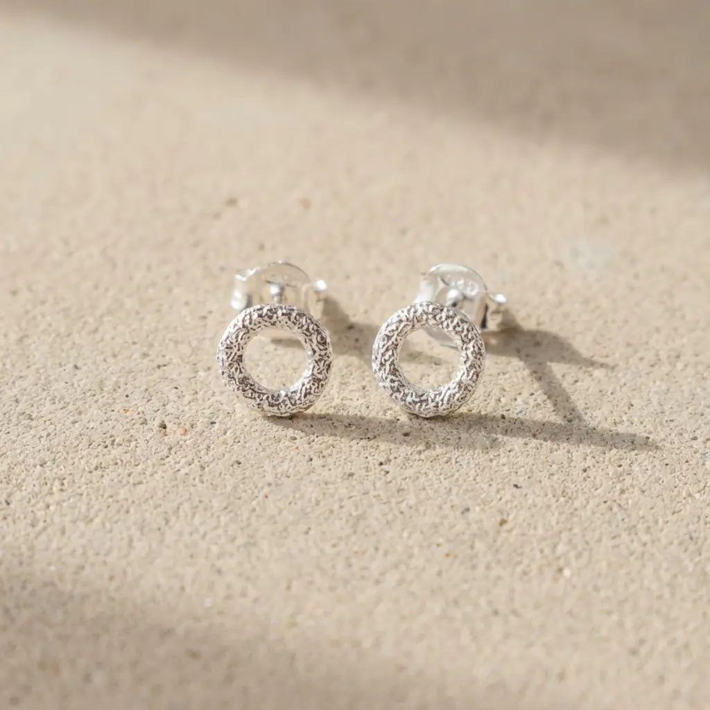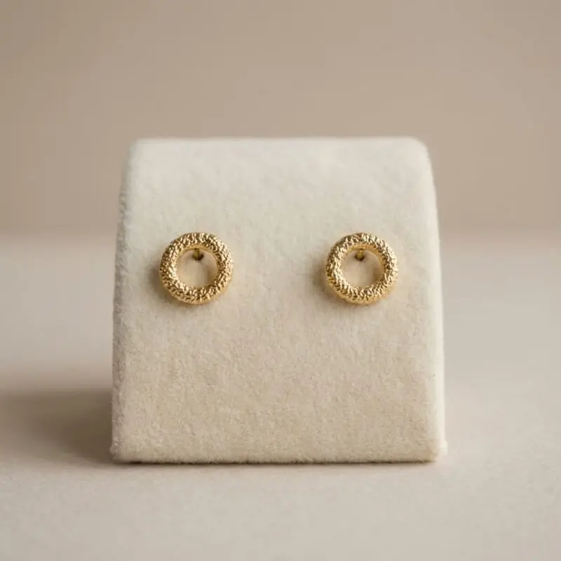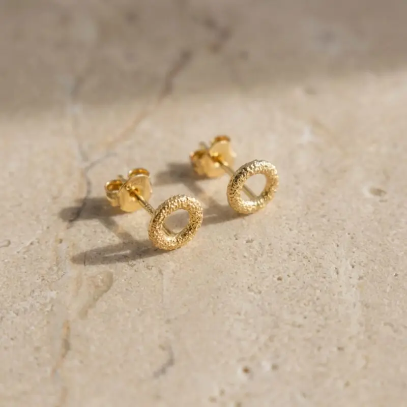 Pagerinkite savo kasdienį įvaizdį auskarais "Luna Stud", pagamintais iš prabangaus 925 prabos sidabro arba padengtais 18 karatų auksu. Šie auskarai turi unikalų tekstūrinį žiedo dizainą, kuris klasikinei formai suteikia šiuolaikiškumo, todėl puikiai tinka ir biurui, ir vakarui.